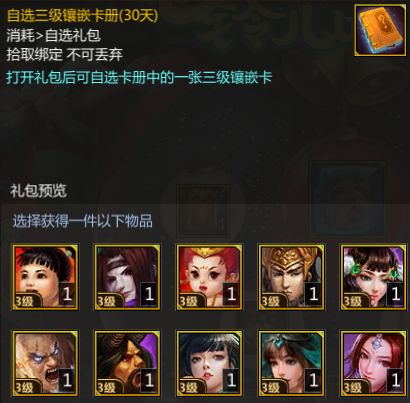 自选三级镶嵌卡册中打开可自选一张三级的镶嵌卡。