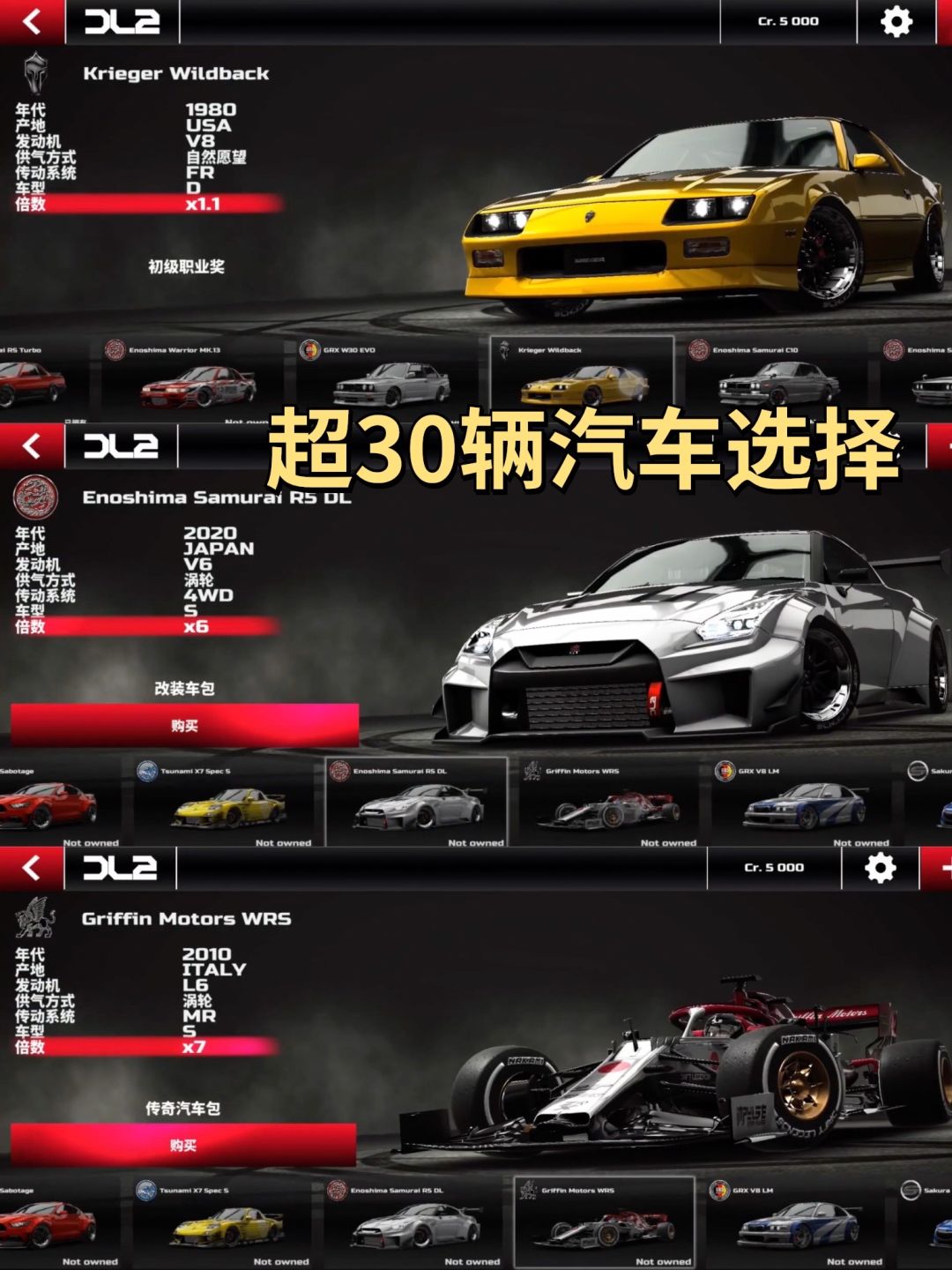 💡 超过30辆汽车可选择,每种车辆都有独特的性能和特点。