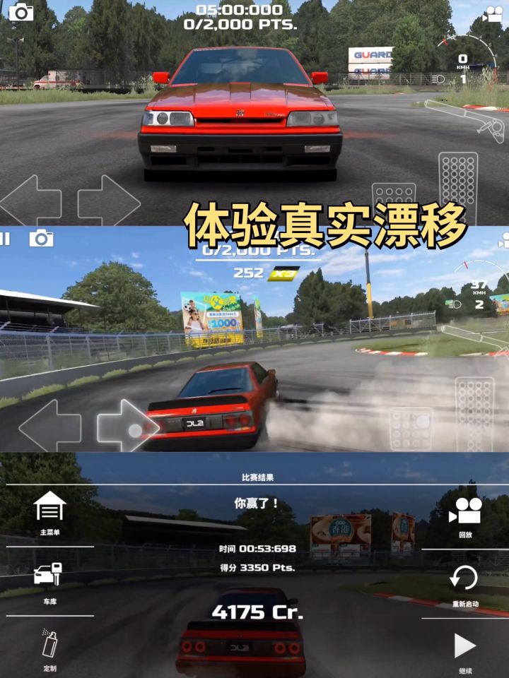 挑战其他漂移爱好者,登上跨平台在线排行榜的巅峰。