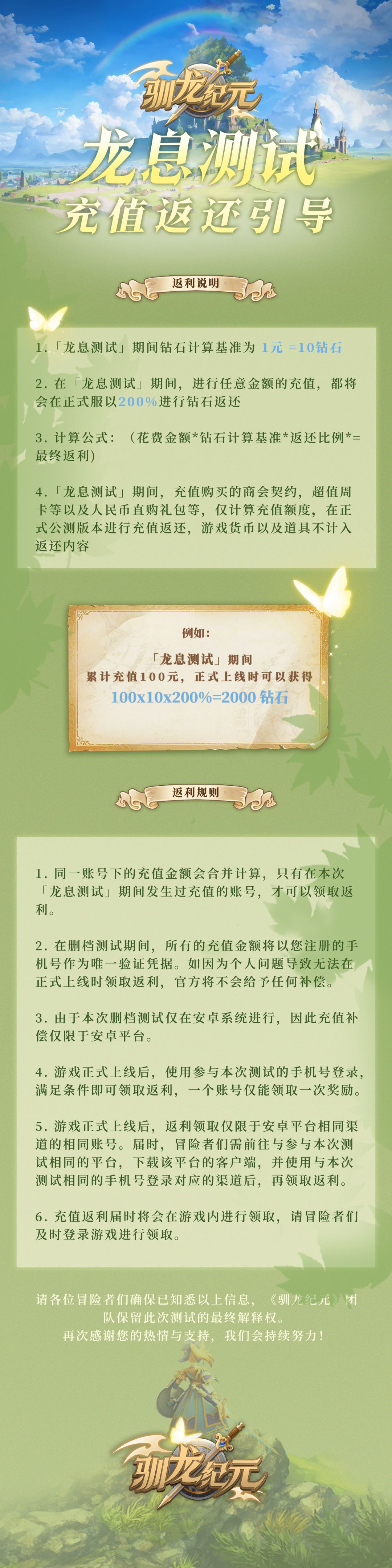 驯龙纪元「龙息测试」本次为付费删档测试,游戏内将开放充值功能。