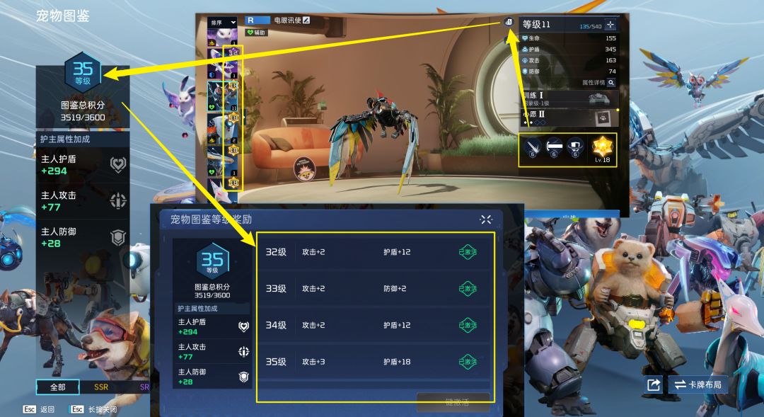 我们在抽取宠物时会积攒大量蓝色通用数据——可用来提升R、SR宠物的技能等级(R级宠物可轻松学满18级),以此获取大量图鉴积分,领取更多人物属性。