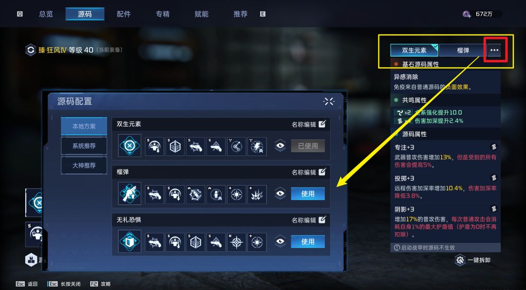 多种武器往往需要配置多个源码组合,但许多玩家会误以为只有两个方案可供保存,其实点击“更多选项”,便能弹出源码配置窗口,在这里可以保存更多方案,以便随时切换。