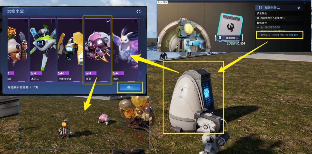 ②拍照类——如小小需要与美美完成合照,但想要找到携带美美的玩家十分困难,此时,你可以将美美设置为宠物小窝的展示宠物,如此便可在自家庄园完成合照任务。