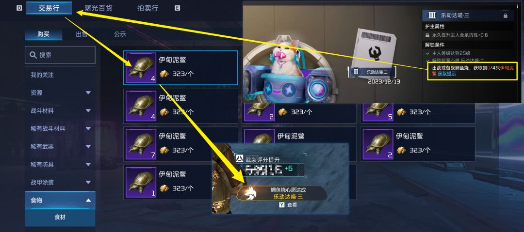 ③道具获取类——如鲷鱼烧,需要携带它钓取一定数量的稀有鱼类,这种心愿通过交易行购买也是可以达成的。