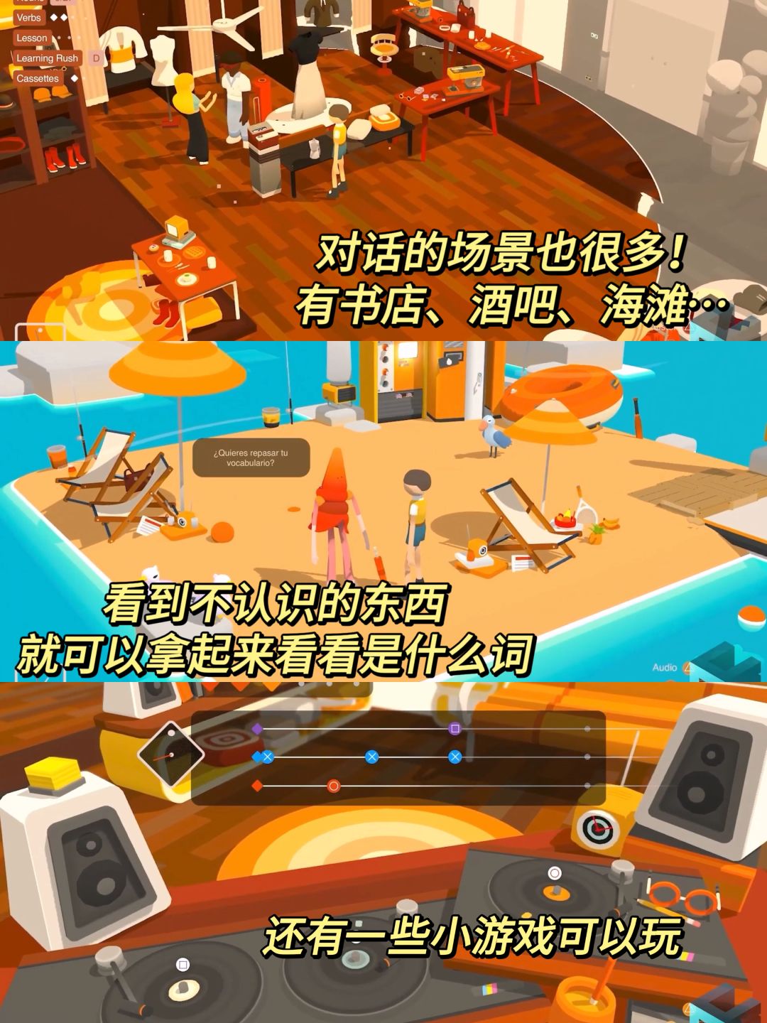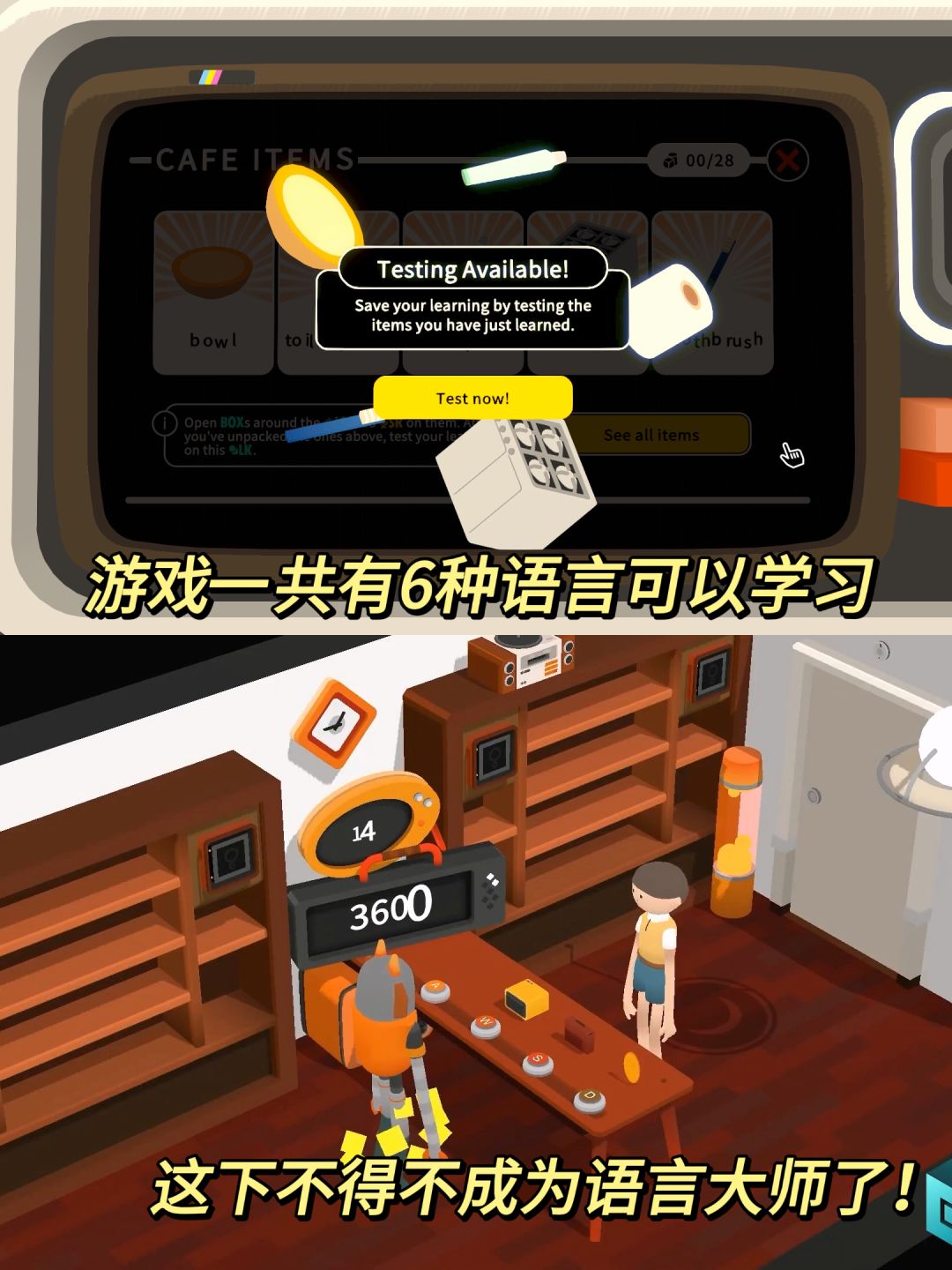 游戏一共有6种语言可以学习:中文、德语、西班牙语、法语、日语、意大利语