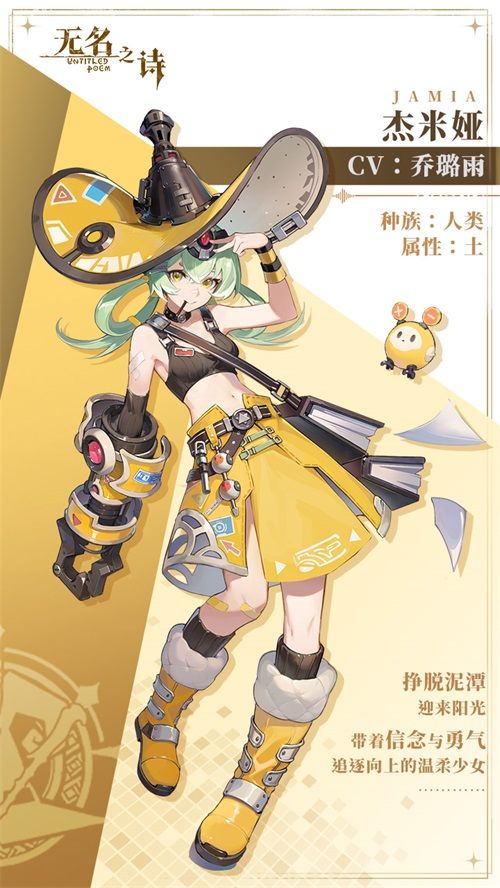 杰米娅出生在罗麦安合众国的一个普通家庭,由于自身的天赋有限,杰米娅没能成为一名法师,只能成为一名魔导技师。杰米娅的父亲在她十几岁的时候便因为积劳成疾而病逝,这一段经历造就了杰米娅比同龄人更坚强的内在。虽然杰米娅在做决策之前常常会犹豫很久,但在厘清自己的内心后,会毫不畏惧,向着自己的目标一直坚定地执行下去。