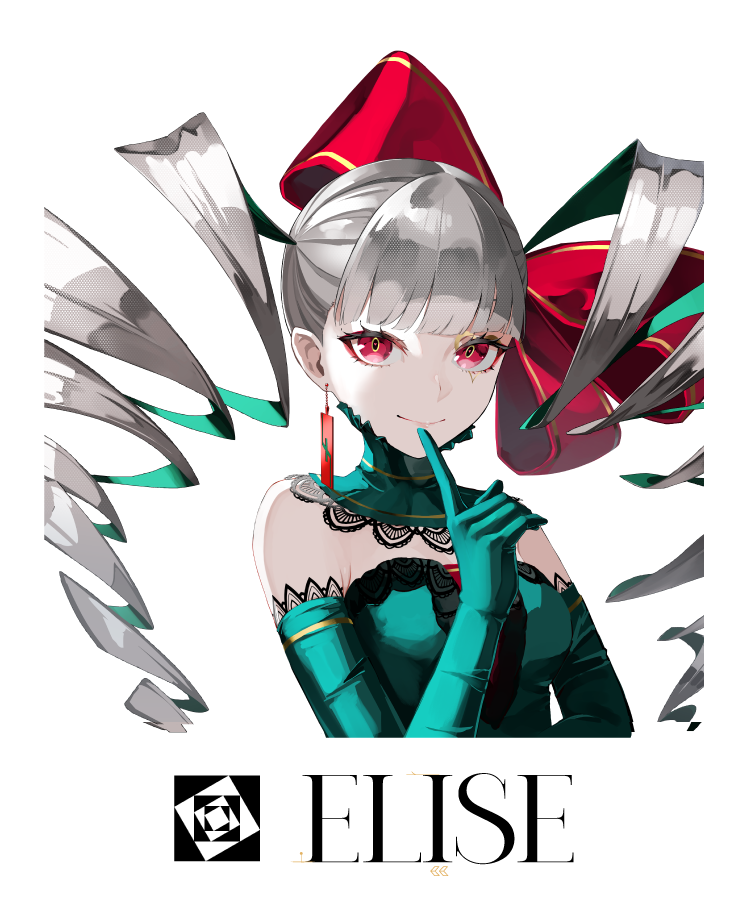 这首乐曲的标题给人感觉非常女性化且惹人怜爱,所以我构想了一位充满少女气质的奏者。《致爱丽丝》的旋律很抓耳朵,容易给人留下印象,也算是一首小有名气的乐曲,因此我想将她设计成一位被大家宠爱的奏者。我很喜欢她乍一看设计得十分大胆的服装!眨眼之间就把她的人设画好了。