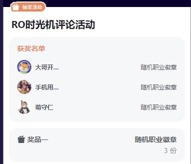 前方【RO纪念金片】福利预警!卡普拉也发起了《RO回忆录》实体书共创征集活动。投稿你曾经或本次测试中的RO回忆故事,亦或是自创的同人内容,官方将根据投稿质量及热度筛选优秀故事汇编制作RO玩家实体书!优秀作品还能拿下金卡、周边等福利。点击链接了解活动详情吧!