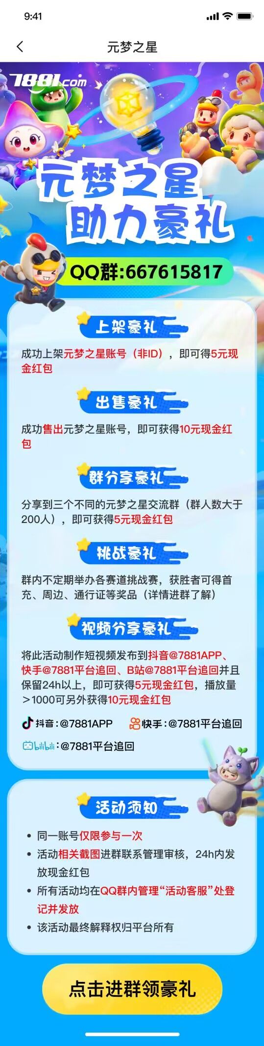 667615817群中有活动分享带截图去群中找管理要