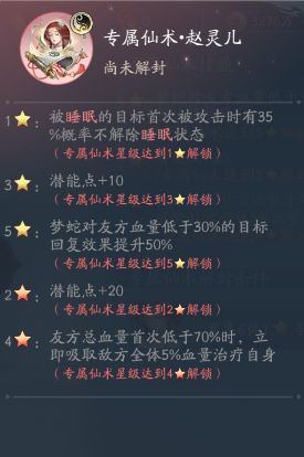 阴阳灵儿的专属仙术整体而言影响度并不大,首次攻击35%不解除睡眠,但阴阳灵儿一般速度都很快,之后也会有好几个群体攻击,所以就算第一次不解除,第二次也会被解除(睡眠也只能对前排生效);阴阳灵儿恢复本来就很感人,所以增加50%也没办法提升多少,至于吸取对面5%血量治疗自身,只能说聊胜于无吧。