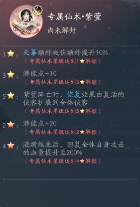 3级:紫萱阵亡时,恢复效果由复活的侠客扩展到全体侠客
