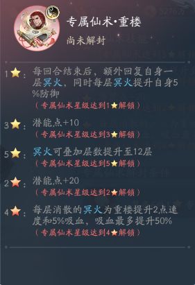 重楼的专属仙术估计是最暴力了,本来冥火就是保命的,层数上限增加保命机制拉满,每次消耗还能获取2点速度和增加5%吸血,本来就已经是极强的输出,搭配了专属技能后,简直逆天。这一波阴阳专属仙术最大的获益者就是重楼