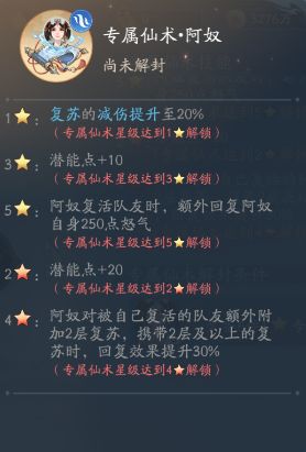 火阿奴就看仙术1级和5级,仙术1级是水队恢复的克星,简直效果拉满,5级是火队增伤的极致辅助,本次专属仙术相当具有牌面
