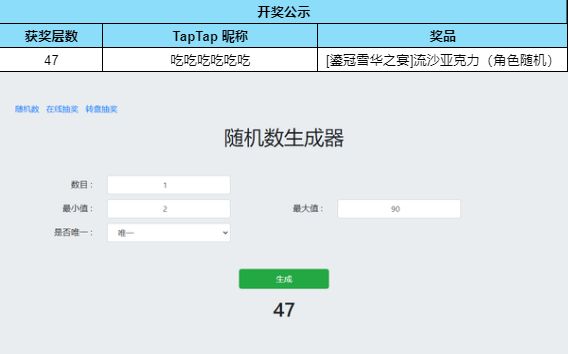根据开奖结果显示,恭喜以下幸运的玩家们获得奖品: