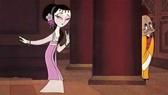 《天书奇谭》动画中狐女的斜眼以及两片腮红,就吸取了京剧旦角脸谱的造型特点,按照中国传统审美标准创作的美女,迷倒了两个和尚,府尹大人和小皇帝。