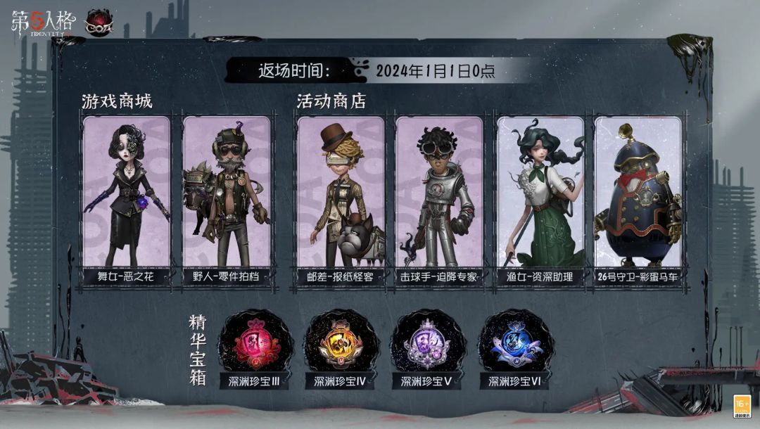 ※部分往期深渊珍宝和系列时装也将在1月1日0点迎来返场,届时大家可登录游戏购买~