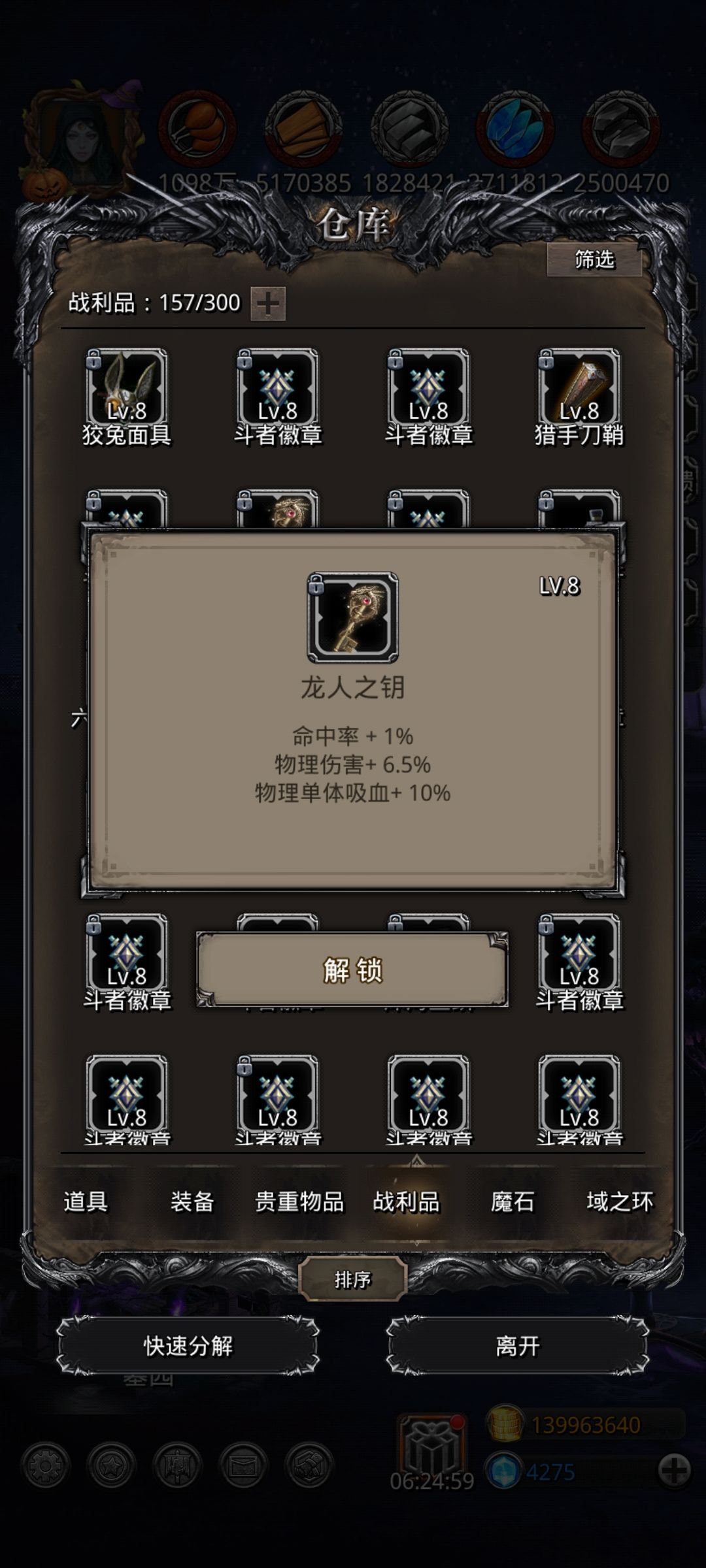 夜魇极品单吸战利品,伤害应该跟6.5物伤的龙人之钥差不多(略高),只是少了命中属性。