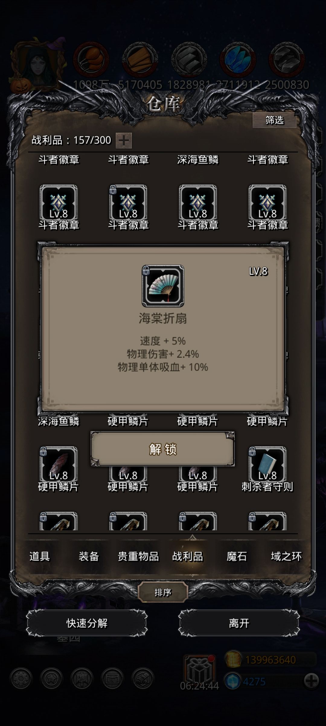 1.地堡物理单吸战利品分为三种——分别是力量单吸,物伤单吸,以及最为少见的速度物伤单吸(燃魂蜡烛之前,仅有海棠折扇为速度物伤单吸战利品)。