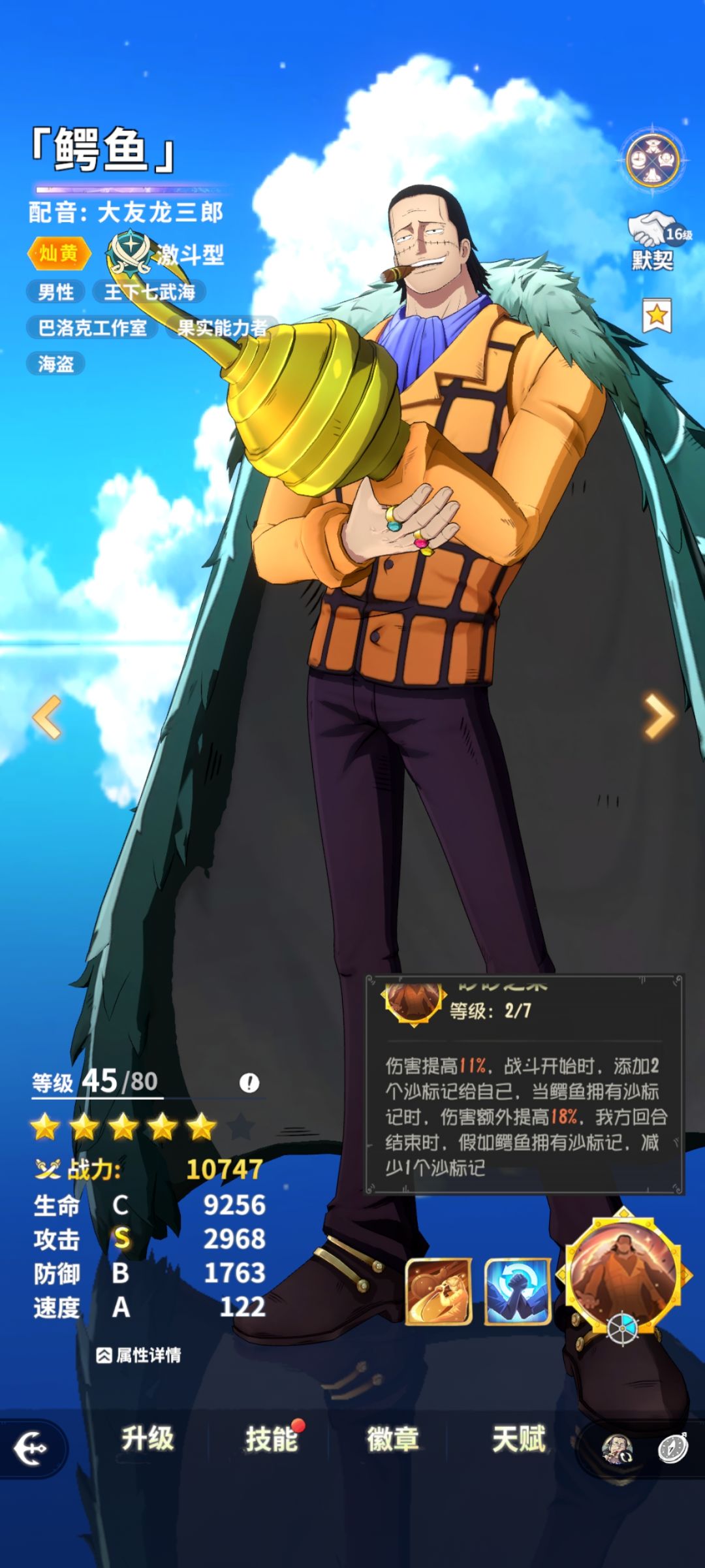 t1:鳄鱼(配高命中vv时)、罗、艾斯、班吉、艾尼路、新世界路飞、新世界佐罗、山治(vv后排)
