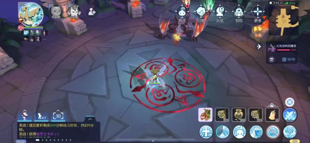 4.如果需要放两个输出技能的话,那么命运掠夺就只能手动释放放或添加到自动攻击里了。但是释放的时候会有1秒施法动作(如下视频),这个时候是无法攻击的,所以是只有7-1=6秒有穿刺加成,剩下6秒没有,虽然可以覆盖半程但实际操作上因为那1秒的技能释放,会丢失部分dps。变身输出爆炸,每一秒都很重要。