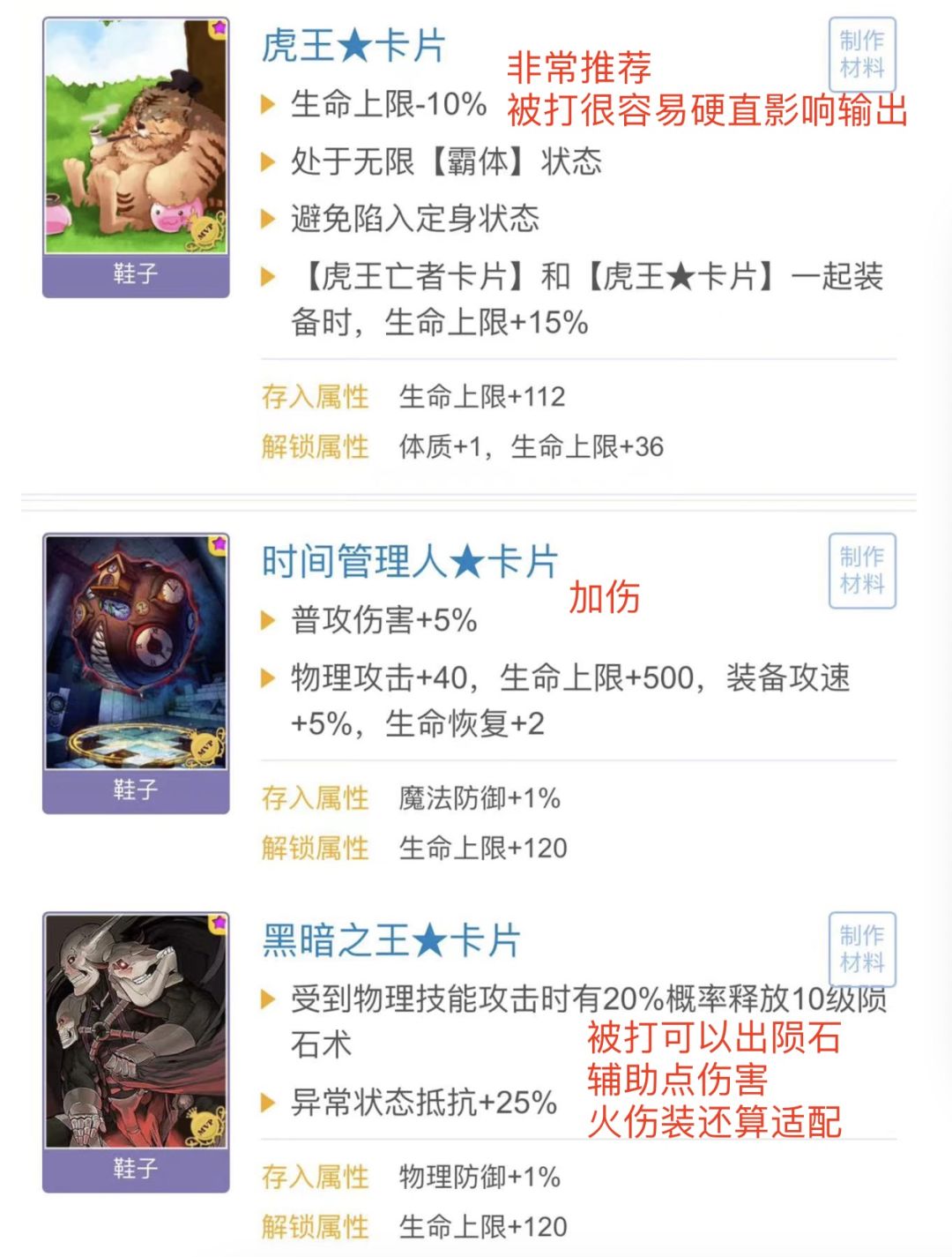 且上面说过大蛇是以火属性为主进行输出,变身后的吐息作为普攻享受普攻加成,所以配装上除了破防穿刺外,向元素伤,火攻,普攻加成方向配。因为异常流比如毒套其实除了丽娜,辉煌和无限法师这种本身就带了易伤的职业外都可以走,另外部分副本比如幻龙秘境,英灵迷踪和博物馆里的boss也不吃异常所以这里并不会罗列出。有需要的可以根据自己的能力去配,无非就是凯美拉星卡,4074卡,花妖铃兰等。