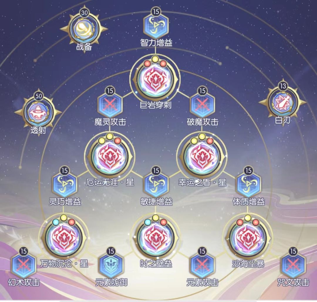 符文摆放如下,PVE中,除去需厄运无涯星符文中的灾祸狂潮叠加态触发几率越高越好外,其余的符文对pve影响都不大,有词条即可。奥秘符文我的喜好如下,两个增伤看情况总应该可以触发一个,另外一个我个人喜欢盾,这部分大家看自己喜好培养即可。