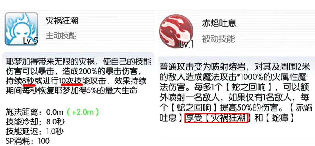 3.深渊之枪会消耗灾祸狂潮的魔法暴击次数(8秒或10次),尤其是变身情况下由于普攻(赤焰吐息)能享受灾祸狂潮的暴击收益,多配置了一个深渊之枪的话反而会降低/占用赤焰吐息和侵袭这两个高倍率技能的暴击机会。