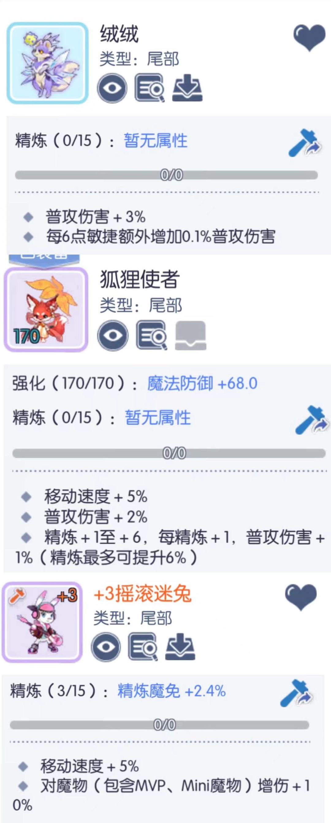 尾部选择上我更推荐绒绒,敏捷加点可以获得更多的普攻加成
