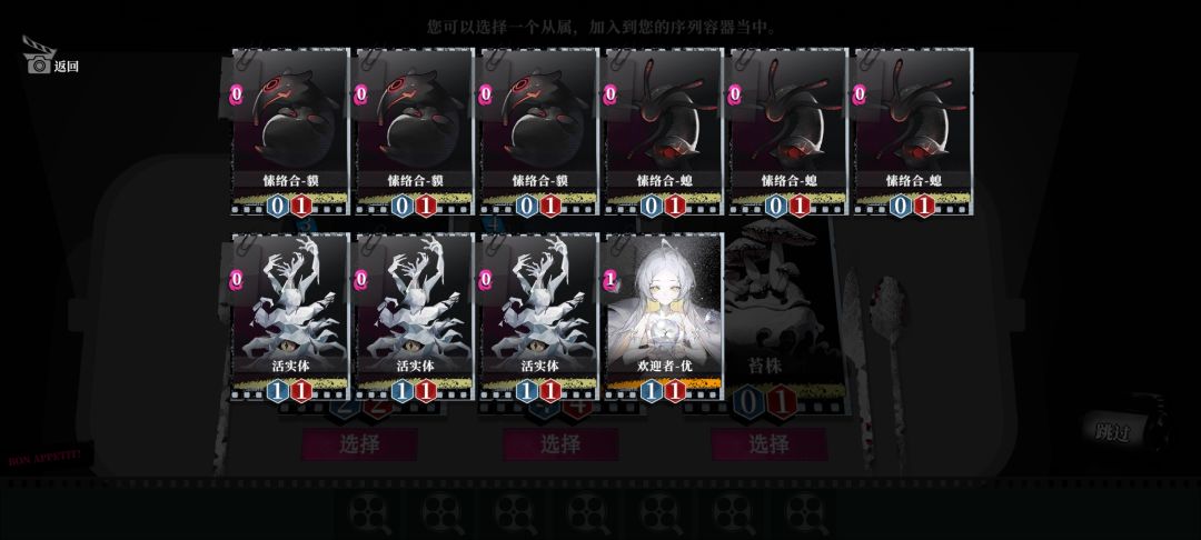 战斗胜利后可以选择从属如果没有合适低级卡,可以看看高级卡的被动效果如何,如上图这个就很完美。放在0信息素上开局就能3个狗粮完美开局!!!