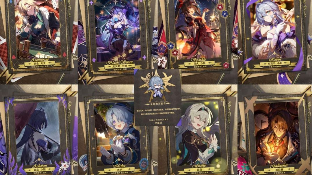 【未来新角色】由家族话事人‘星期日’先生公布了不少宴会上出席的新角色,以下几位是特邀嘉宾:知更鸟、砂金、黑天鹅、花火、黄泉、米沙、流萤、加拉赫。