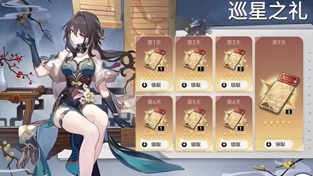 【巡星之旅】经典十连,此次的背景图是阮梅,按照登录天数共计可得10张星轨专票。