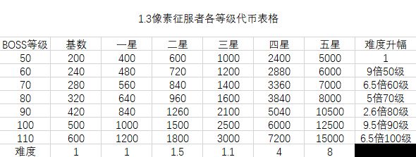 1.3像素入侵代币表格及BOSS攻略