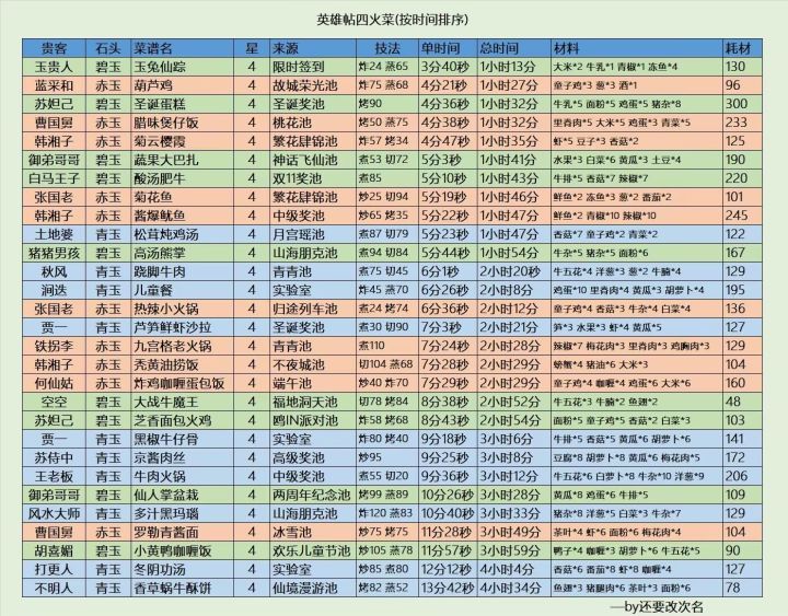 按梨佬建议,增加石头三火菜,并且所有菜掉石头颜色标明了。
