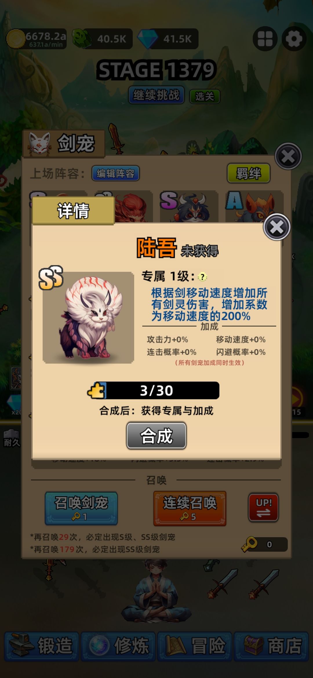 推荐剑宠:火麟、云影、炎豚、陆吾/墨莲/水漓。顶配就陆吾,没有就推图墨莲,刷钱水漓。