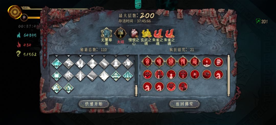 首先开局踏风猪心,踏风三号位保证收剑稳定,猪心4号位加伤,第一局拿专属,但重点不是那些乱七八糟的而是蓝色技能蓄力正常移动,这个才是核心,第十层搞完虚无诅咒十一层搞专武加个飞剑伤害提高词条就行,不要着急带太祖前期没叠起来伤害不够,建议把梦魇那几个吃飞剑的比如猩红色欲都拿了不然可能打不动boss,等到出祝福了可以换太祖,词条带个加伤就行,后面不动拿完了就纯靠移动走位了,所以建议直接门口开炮,踏风没用了可以换灵玉或者青龙,反正伤害都是梦魇打的,130层左右换朱雀肯定没问题了,其实可以二号玄武,这样加伤和朱雀一样还比朱雀多10%*1.5,但朱雀有附加真伤看情况选