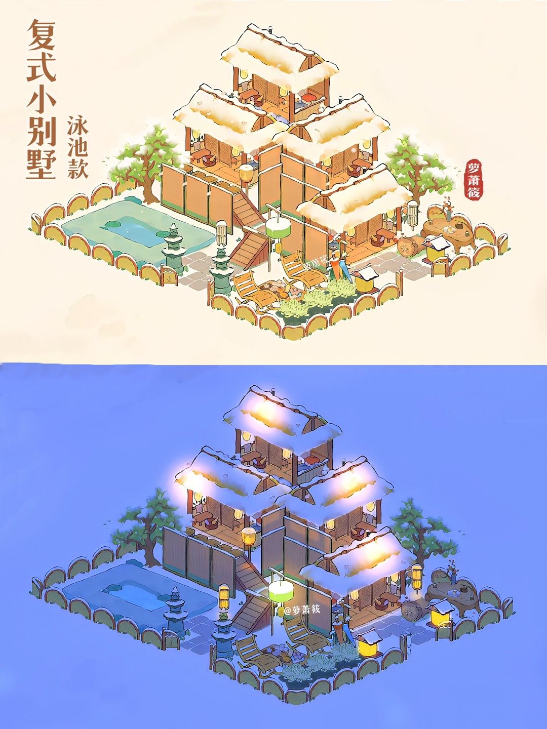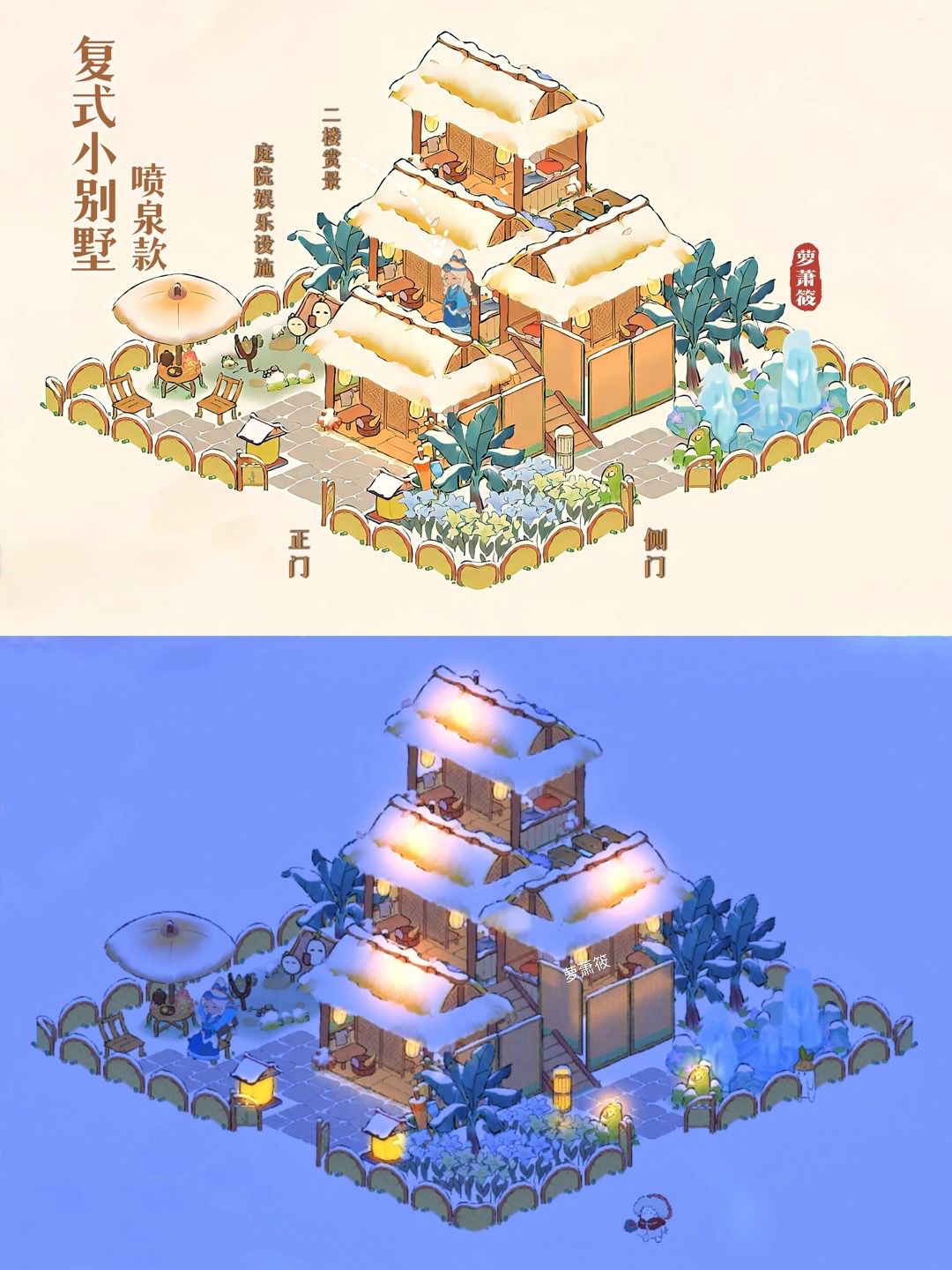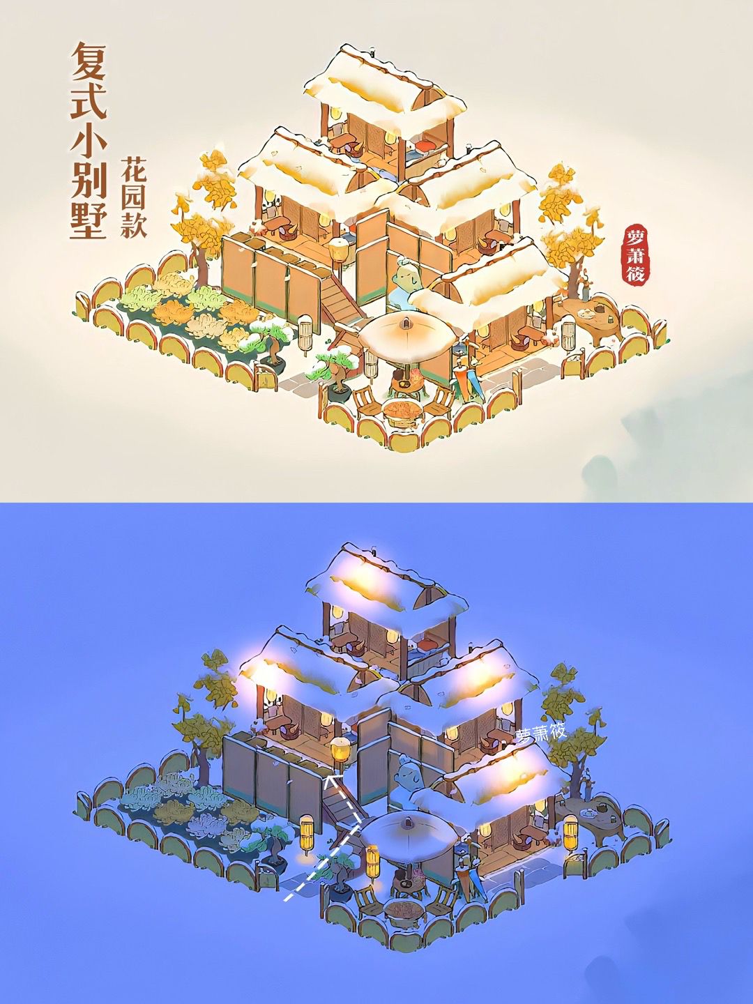 •三种不同庭院的复式小别墅:花园款、喷泉款、泳