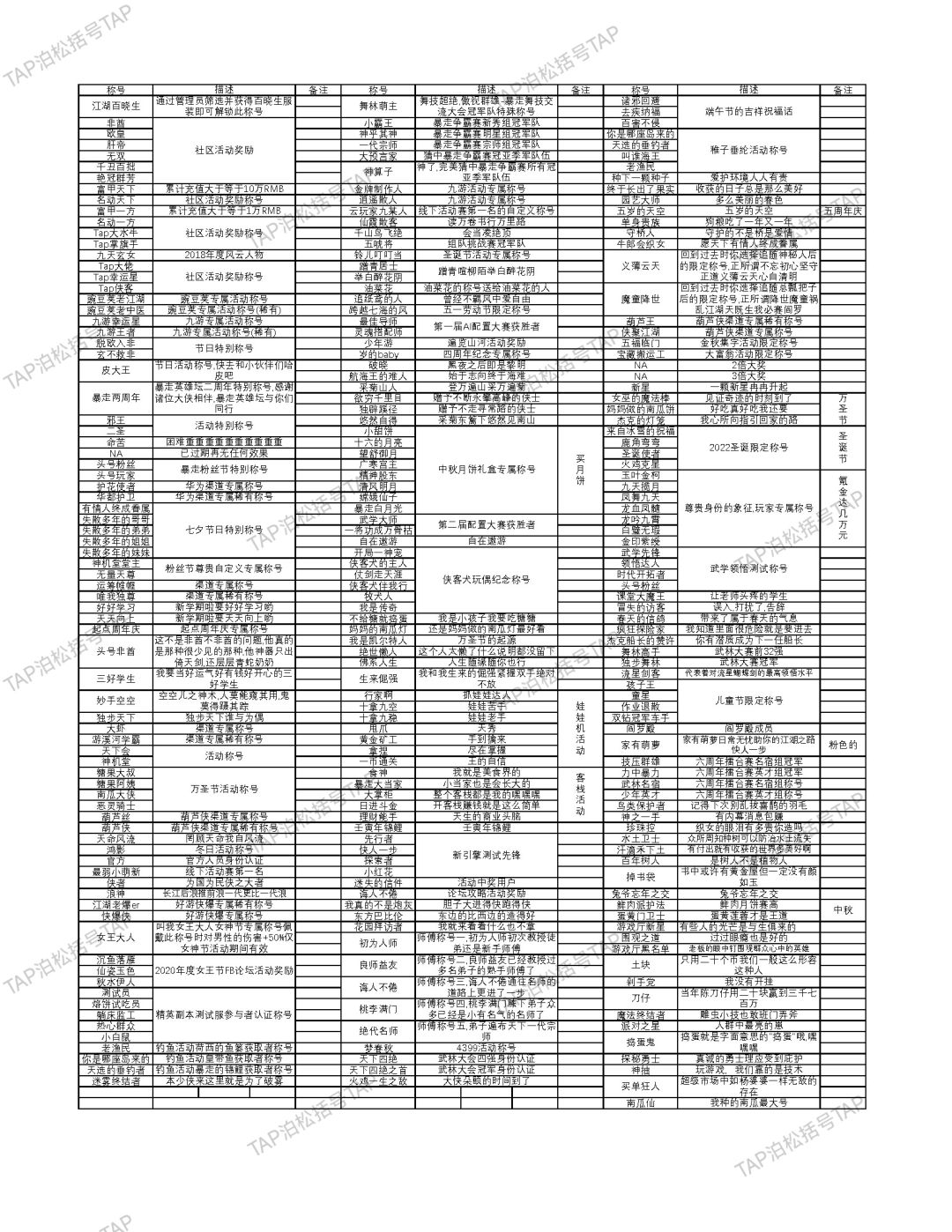 称号汇总