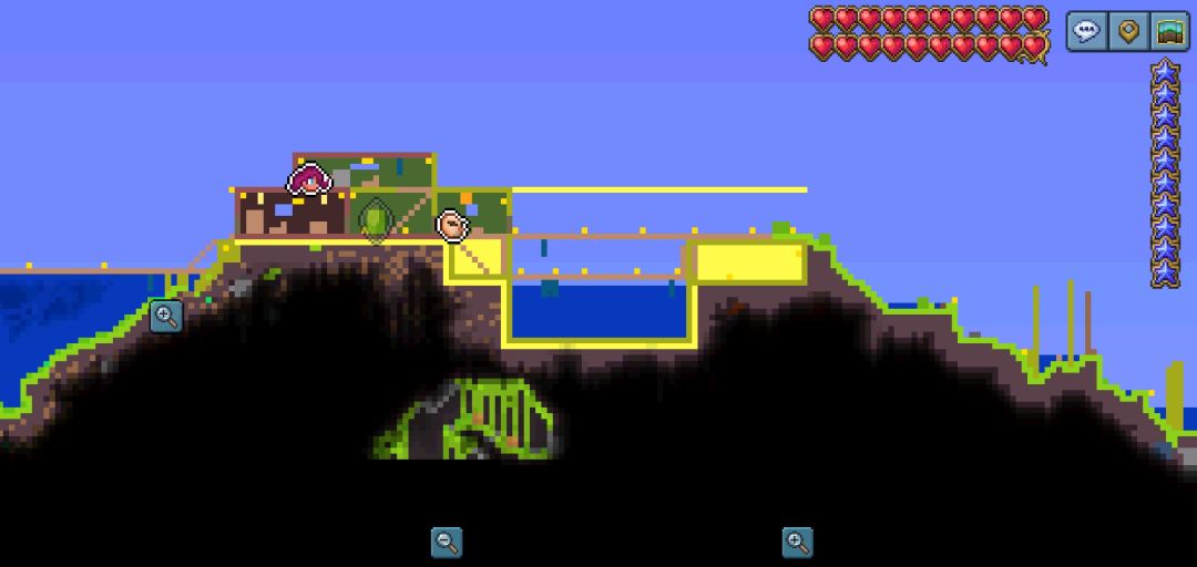 也不知道玩了多久,第一张NPC们住的地方是几个大佬造的,然后旁边就是猩红……大佬直接炸了隔离带,然后除了第一张,其它都是我一个人造的钓鱼场(