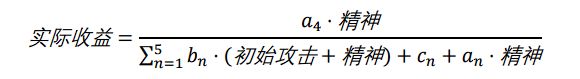 我们只看x>0的部分,可以看出精神越高,收益增长越慢,且有增长极限,极限值y为a4/d。也就是说,收益极限值只与技能倍率、突破倍率、冷却相关,是一个定值。我们计算一下这个极限值,如下