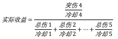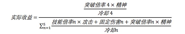 也许有人会问,我的技能等级和属性跟你不一样,算出来结果肯定和你不一样,那该怎么办?为了使本文不失去参考意义,我们要找到收益的变化规律,把数据抽象成函数。实际收益=突破DPS÷5个技能DPS,如下: