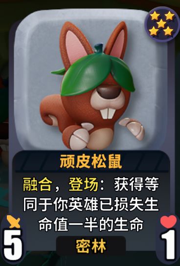 顽皮松鼠:融合,登场,获得等同于你英雄已损失生命值一半的生命