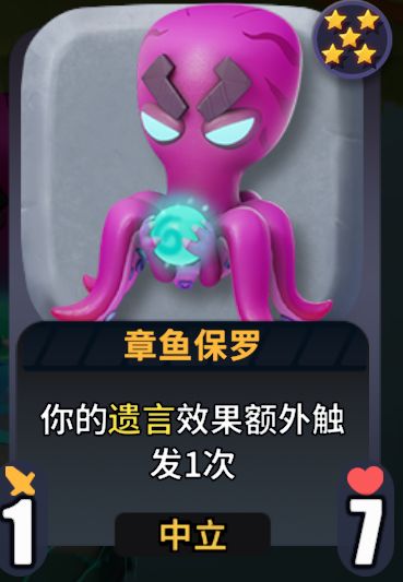 解析:本阵容提升伤害的辅助石灵,在本回合战斗中,所有我方石灵都拥有+3力量,包括遗言召唤出来的石灵。配合章鱼保罗,可以多次触发遗言效果,进一步加强火石鳄霸赋予其他石灵遗言效果的伤害,进一步提升全体总伤害。是阵容伤害提升的主要来源。