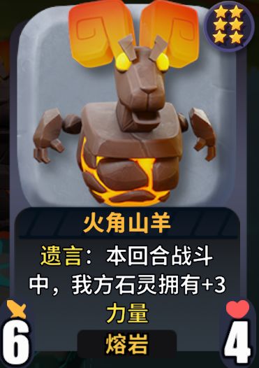 火角山羊:遗言,本回合战斗中,我方石灵拥有+3力量