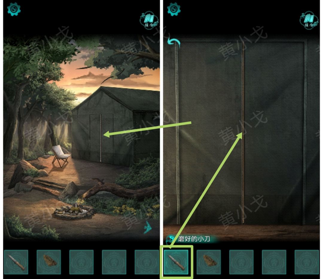 5.(帐篷外)点击帐篷⛺的门,用【磨好的小刀】割开拉链,进入帐篷(有小高能?)