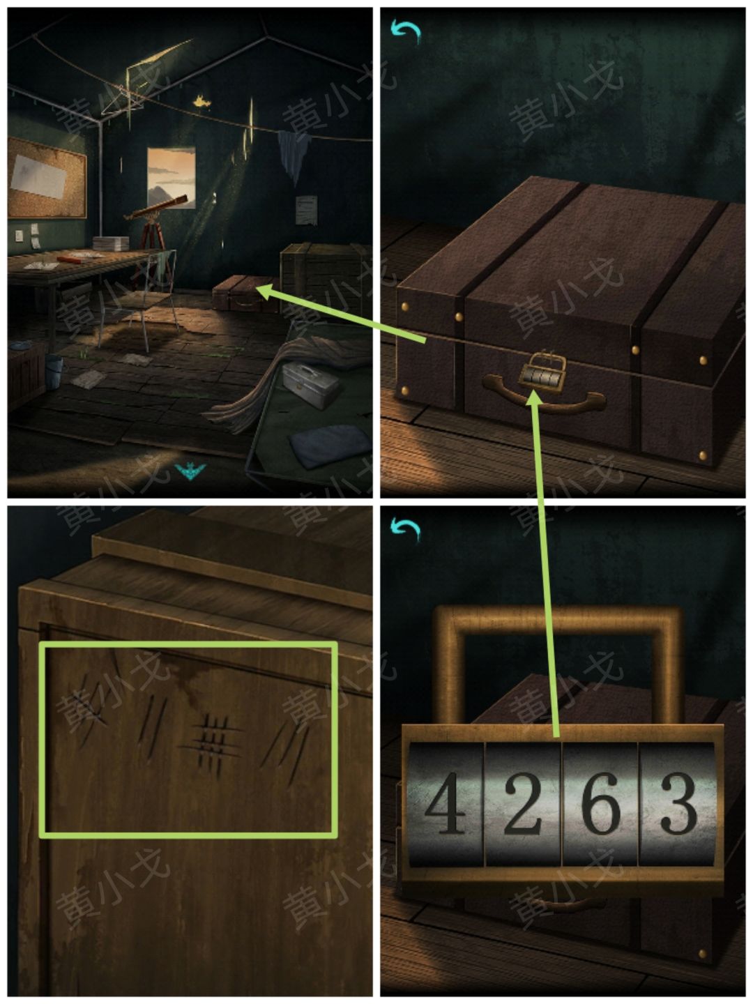 7.点击行李箱上的密码锁,根据木箱上的刻痕,输入密码:4263(数量)
