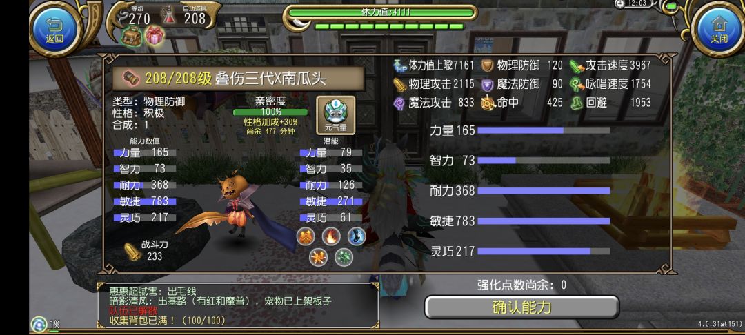 200级宠物,280敏捷潜力120耐力潜力,成品大约4000速2.5万血