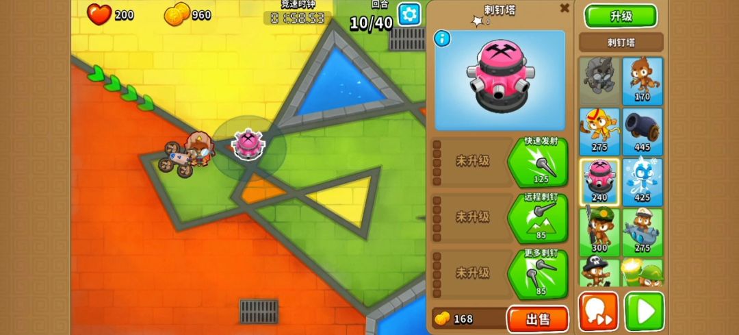 开局先放一个130刺钉塔直接加速回合到第20回合