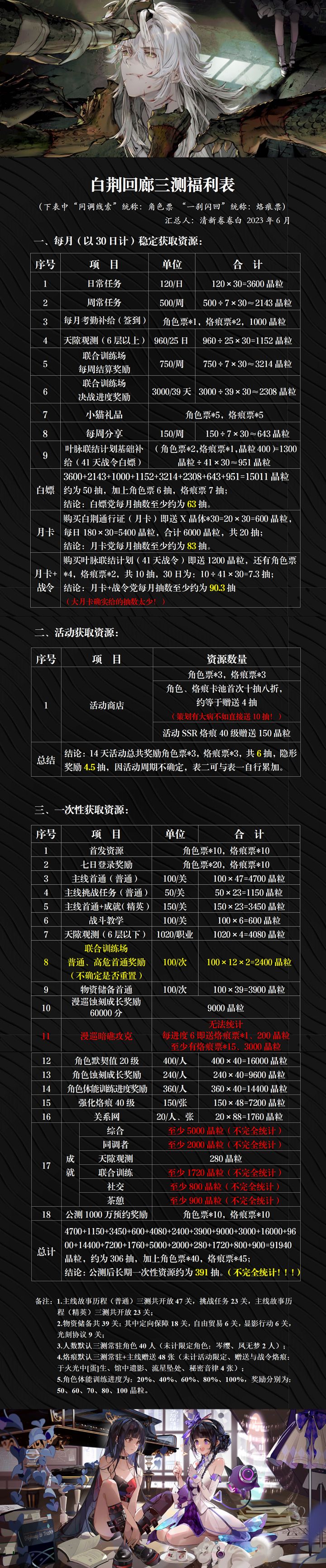 攻略搬运工~虽然是三测的数据,但是四测改动的是一次性获取资源。其他部分还是可以参考的。