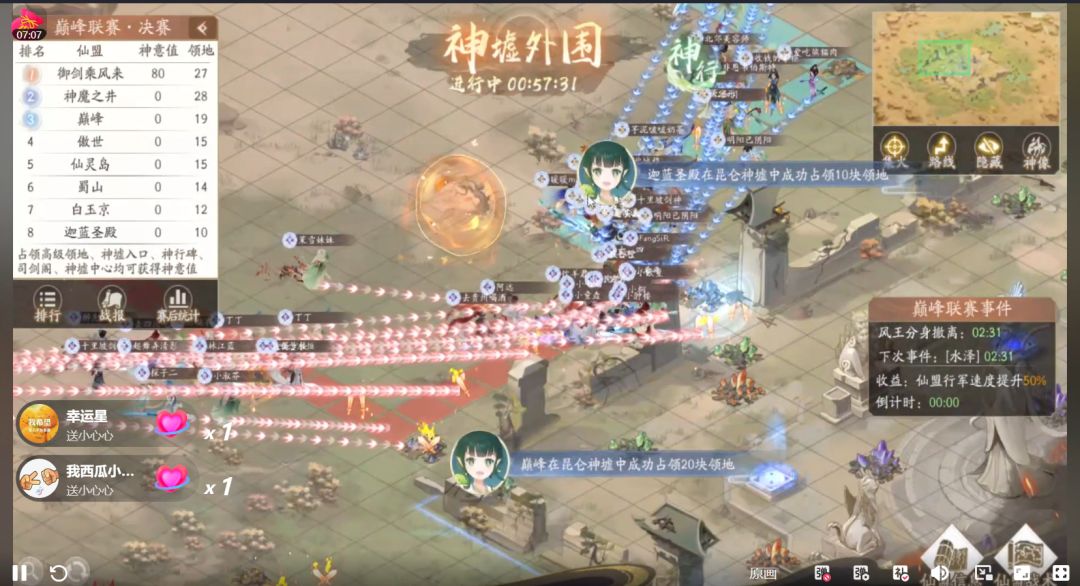 反倒是被【神魔之井】联合【白玉京】、【蜀山】、【巅峰】发起了一波反攻,【傲世】和【迦蓝圣殿】继续立功,为【御剑乘风来】守住了后防线