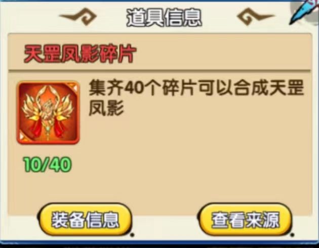 集齐40个碎片可以合成一个天罡凤影。如下图:
